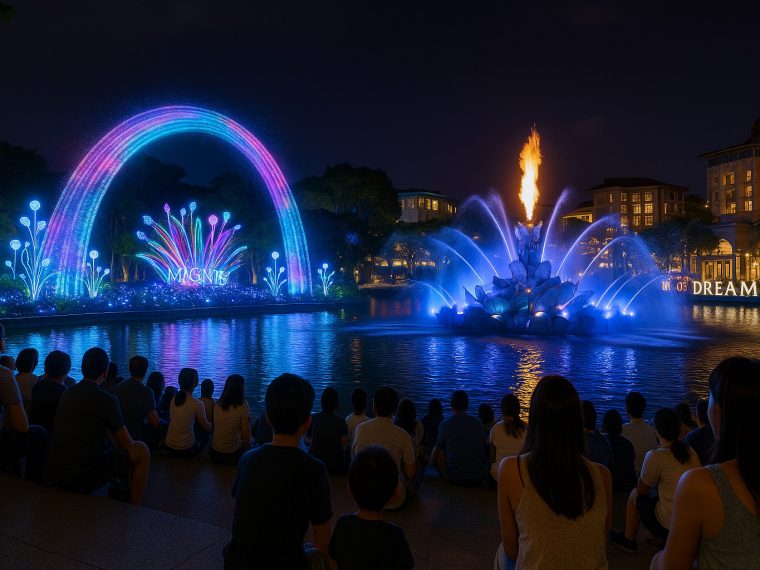Located in Resorts World Sentosa, the Lake of Dreams performance transforms a quiet waterbody into a theatrical stage. Flaming dragons breathe fire, water cannons erupt, and laser beams dance across the night—all choreographed with music. Created by Emmy award-winning designer Jeremy Railton, this nightly show is both surreal and theatrical.
